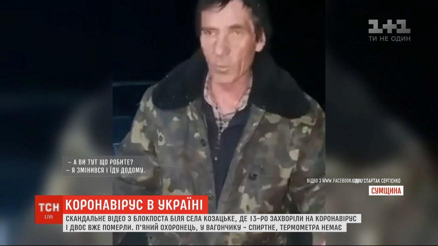 Охоронець з ознаками алкогольного сп'яніння, а температуру міряти взагалі нічим - це на блокпості біля села Козацьке, під Конотопом, де вже зафіксовано 13 випадків захворювання на коронавірус та дві смерті. Скандальне відео виклав місцевий активіст. Більше про коронавірус в Україні