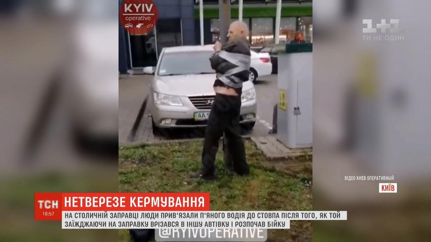 П’яного водія-бешкетника прив’язали клейкою стрічкою до стовпа у Києві