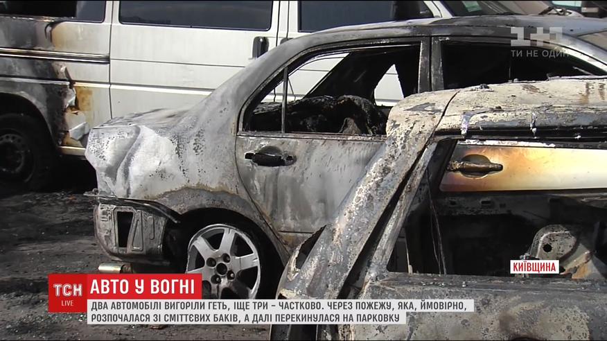 Зайнялося близько четвертої години ранку на парковці біля сміттєвих баків. Сильний вітер швидко роздмухав полум'я. Дві машини вигоріли вщент, інші три - власники сподіваються поремонтувати. За словами очевидців, спалахнуло в одному з баків для відходів, далі вогонь перекинувся на авто.