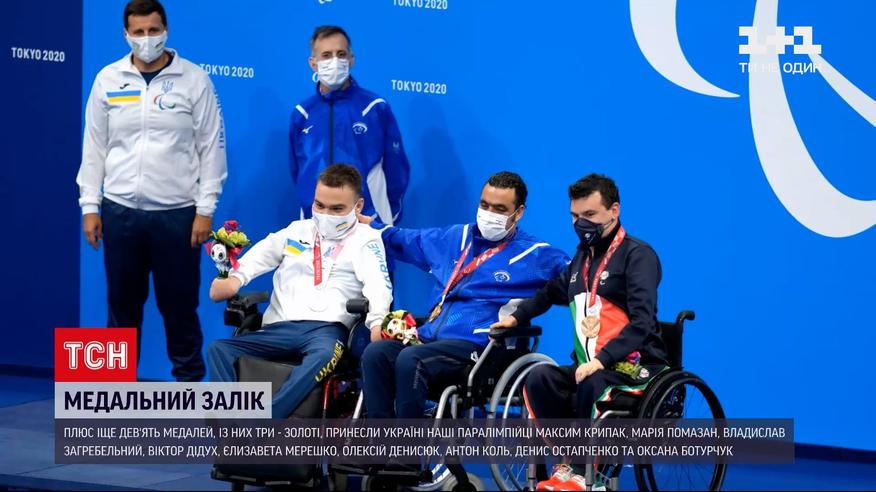 Плюс іще 9 медалей, із них 3 - найвищого ґатунку. Такий нині здобуток наших паралімпійців у Токіо. Максим Крипак виграв заплив 100 метрів на спині з паралімпійським рекордом. Віктор Дідух виборов срібну медаль у змаганнях із настільного тенісу. Єлизавета Мерешко здобула "срібло" на дистанції 400 метрів вільним стилем. Олексій Денисюк виборов "бронзу" в кульовій стрільбі. Про усі інші досягнення за добу – у відео.