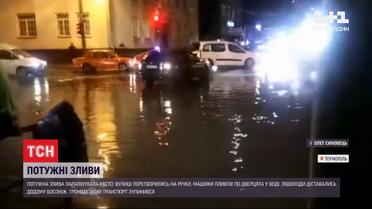 Зливи накрили усю Україну. У Тернополі потужний дощ взагалі паралізував місто. Вода по коліна, люди вбрід переходили вулиці, машини пливли по колеса у воді - їх витягали тракторами. Громадський транспорт взагалі зупинився. Про дощовий вечір, який несподівано зробив з тернопільчан жителів Венеції – у сюжеті.