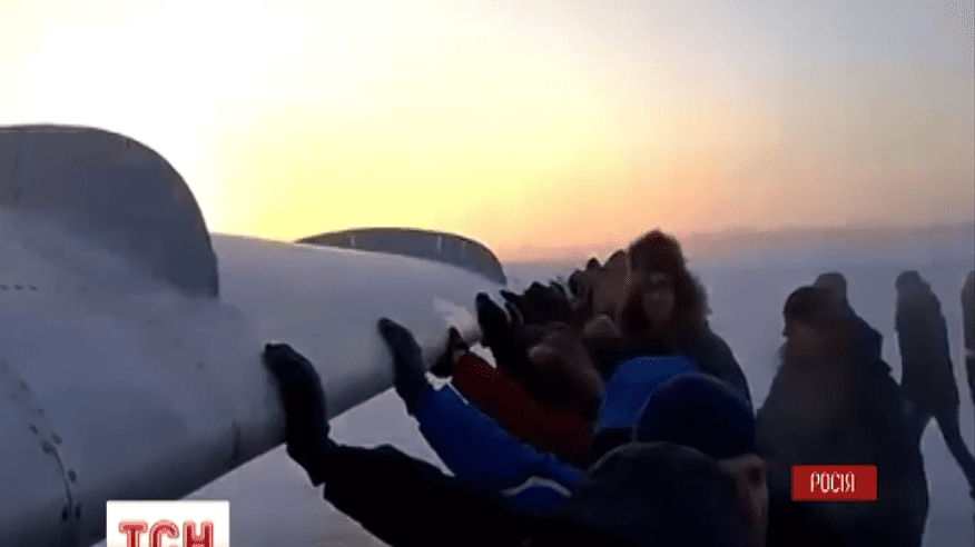 Пасажирам рейсу Ігарка - Красноярськ так кортіло чимдуж потрапити з вахти додому, що зрушити з місця літак із примерзлим шасі вони вирішили самотужки.