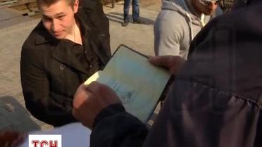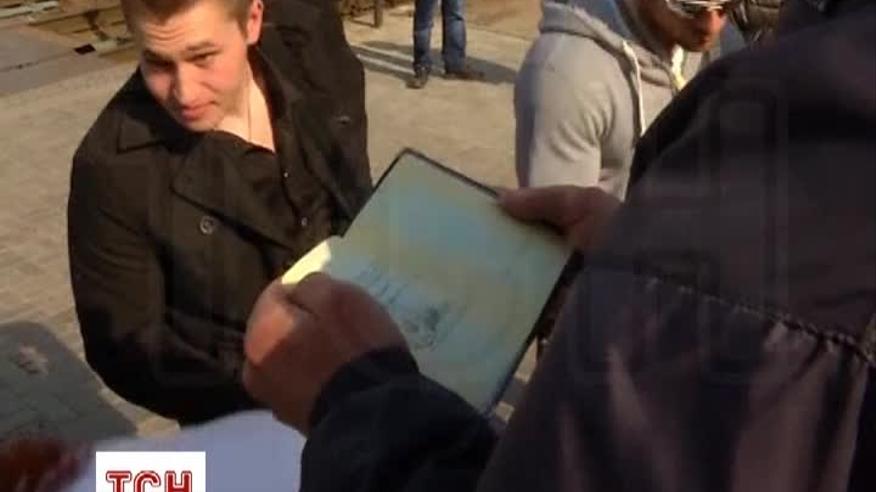 Молодики в червоних пов’язках "Дружиники Криму" змушують пасажирів показувати документи і особисті речі. Тих, хто не погоджується на "перевірки" передають у руки міліції