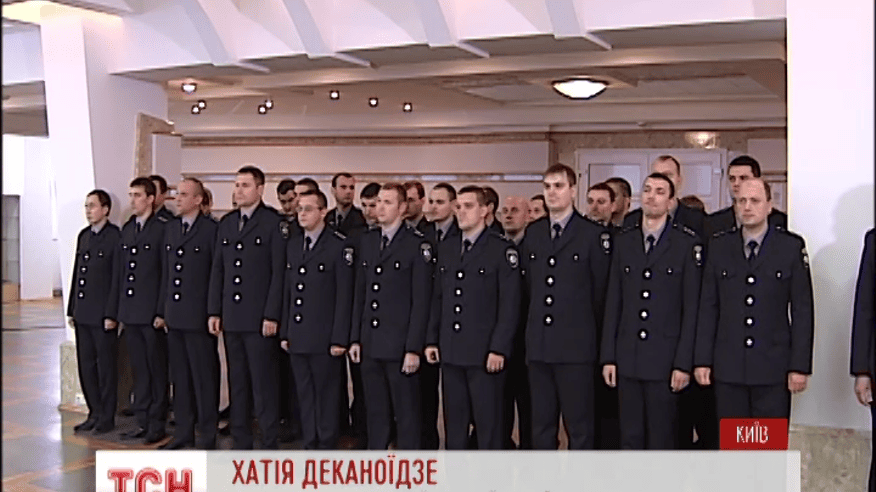 Голова національної поліції України Хатія Деканоідзе привітала своїх підопічних, яким пощастило одними з перших здолати всі етапи люстрації і з міліціонерів стати -полісменами. Серед тих, кому вручили жетон - усі співробітники Центрального апарату, зокрема восьмеро з департаменту внутрішньої безпеки, 15 з карного розшуку та 23 з головного слідчого управління.