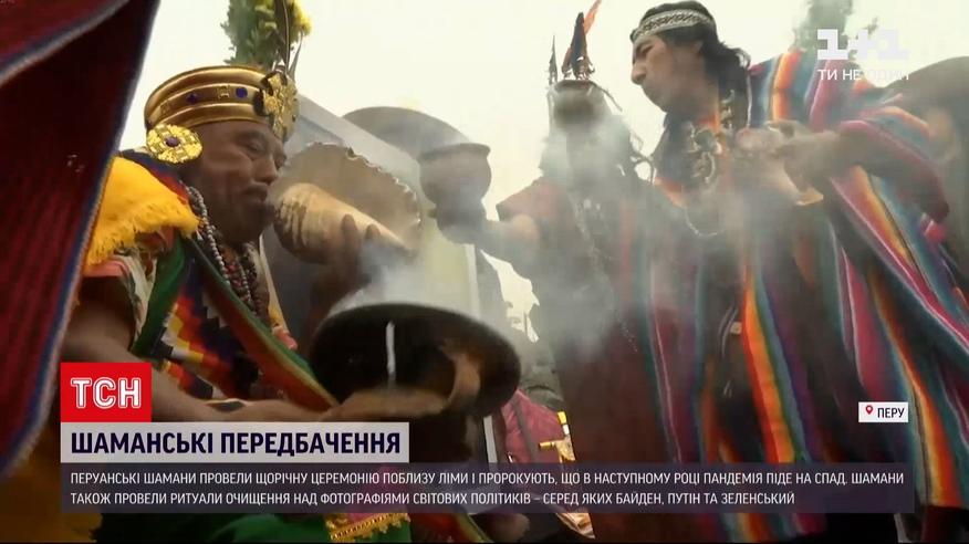 Напередодні Нового року перуанські шамани влаштовали ритуал очищення над портретами світових політиків. Такі обряди проводять щороку. Зазвичай беруть світлини чинного президента США та російського очільника Путіна. Цьогоріч заклинателі відібрали і портрет українського президента. Від чого саме очищують світлини політиків - не уточнюють.
