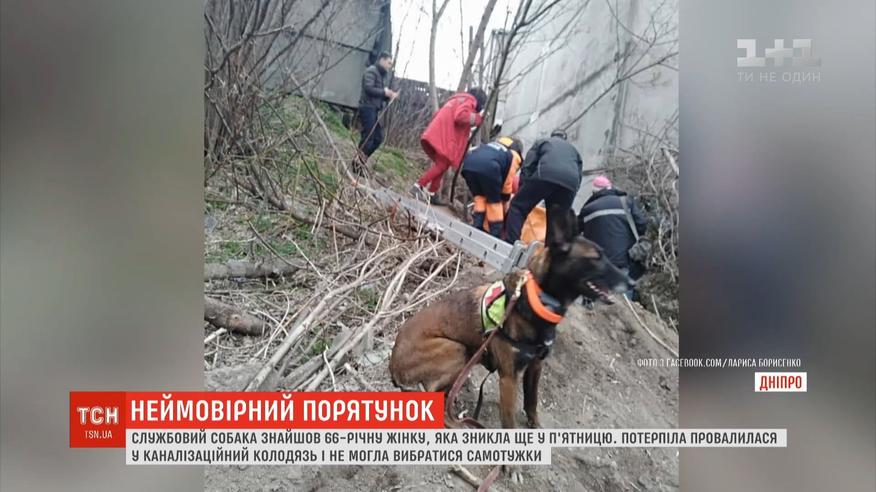 Пес знайшов жінку, яку безуспішно шукали небайдужі понад дві доби у Дніпрі