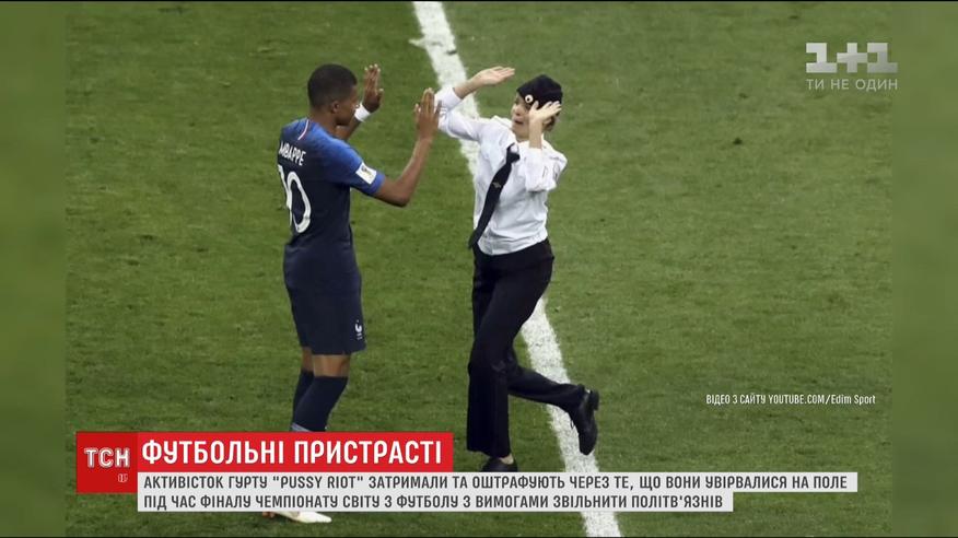 На поле, де визначався чемпіон світу з футболу, вибігли активісти груп "Pussy Riot" у міліційній формі. Вони встигли потиснути руки футболістам, а потім уже їх за руки та ноги витягували з поля. Під час акції з'явився ще й допис у соцмережі, де активісти вимагають звільнити усіх політичних в'язнів. За це тепер їм світить штраф, або виправні роботи, або ж арешт на 15 діб.