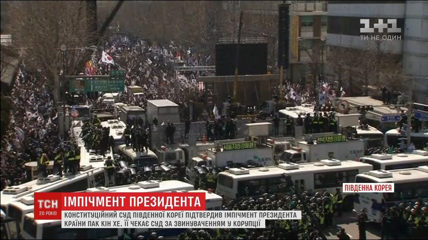 Протистояння триває на одній із площ південнокорейської столиці. Тисячі прихильників екс-президента країни вийшли на вулиці в очікуванні рішення суду щодо імпічменту чиновниці. Кілька годин тому Конституційний суд усунув Пак Кін Хе від влади, визнавши її винною у корупції.