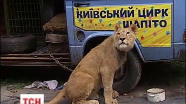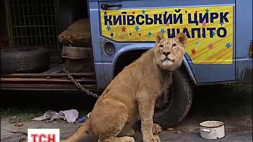 Лев на ланцюгу просто в центрі селища. У селі Борова, що на Київщині, так вирішили прорекламувати виставу цирку "Шапіто".