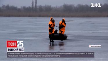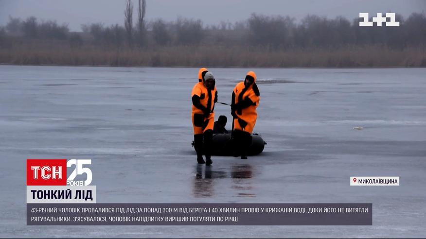 40 хвилин у крижаній воді, але вижив. Під Миколаєвом 43-річний чоловік провалився під лід і не зміг вибратися. Як він борсається у шматках криги, побачили випадкові перехожі. Втім йти на допомогу не ризикнули - відстань до берега була понад 300 м. Люди викликали рятувальників. У спецодягу на катері з надувною подушкою чоловіка вивезли на сушу.