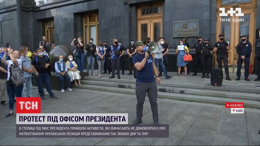 Під Офісом президента активісти вважають "зрадою" інспекцію українських позицій з бойовиками