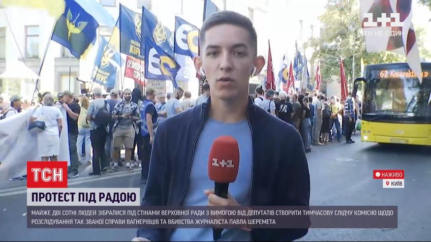 Пікет під Верховною Радою. Зо дві сотні людей зібрались біля українського парламенту. Від народних депутатів вони вимагають створення тимчасової слідчої комісії щодо розслідування справи вагнерівців та вбивства журналіста Павла Шеремета. Чи мирно триває акція - у прямому включенні.