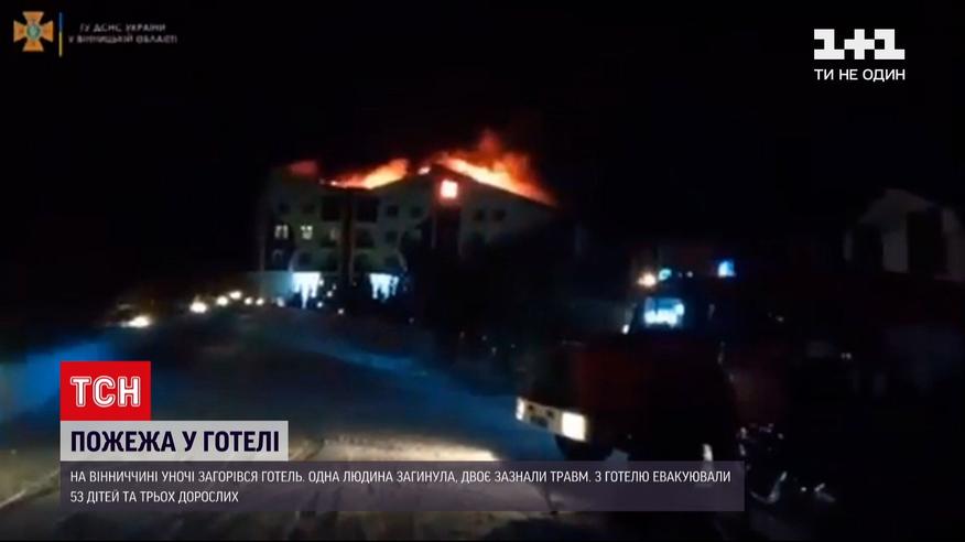 Під Вінницею уночі загорівся готель. Натепер відомо про одного загиблого та двох потерпілих. У момент займання у 6-поверховій споруді готелю "Батерфляй" , розташованому у селі Селище, перебували понад пів сотні людей. Ще до прибуття рятувальників - евакуювали 53 дітей та трьох дорослих. Дітям від шести до 16 років.