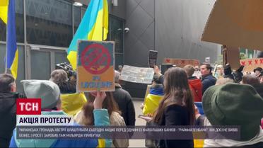 Пікет банку Райффайзен – він не хоче йти з Росії, бо має мільярдні прибутки