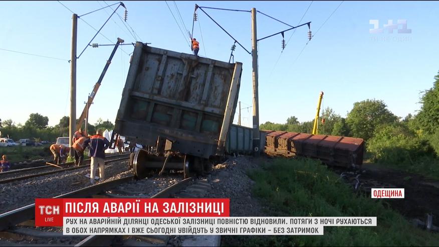 Потяги з ночі рухаються в обох напрямках і вже сьогодні увійдуть у звичні графіки. Напередодні вранці ремонтникам вдалося відновити одну колію, там організували реверсний рух. Увечері за допомогою залізничного крана та спецтехніки прибрали понівечені вагони і проклали ще одну колію.