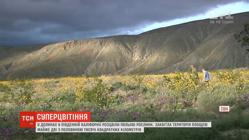 Долини вкрив килим з жовтих, фіолетових і білих квітів. Загалом розквітла територія площею у майже 2,5 тисячі квадратних кілометрів. Помилуватися квітами до Південної Каліфорнії масово приїжджають не лише туристи, а й місцеві.