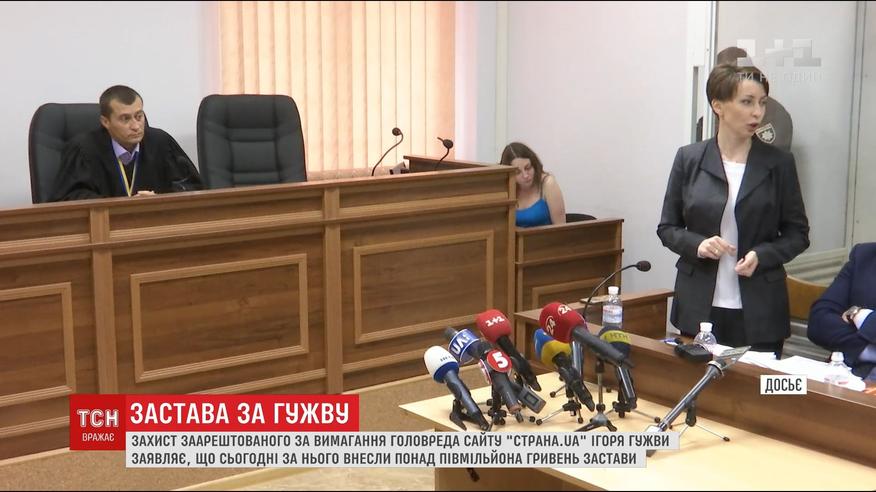 Понад півмільйона гривень застави внесла заступниця редактора - про це повідомила адвокат Гужви, міністр юстиції часів Януковича, Олена Лукаш. За даними правоохоронців, Гужва разом зі спільником Антоном Філіпковським вимагали від нардепа-радикала Дмитра Лінька 20 тисяч доларів за неопублікований компромат. Філіпковського відпустили під цілодобовий домашній арешт, бо той уже співпрацює зі слідством.