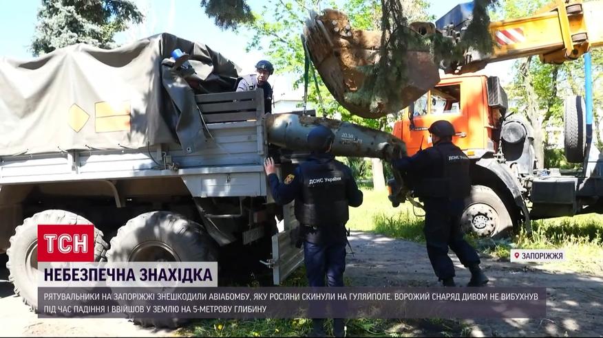 На Запоріжжі рятувальники знешкодили авіабомбу, що росіяни скинули на Гуляйполе. ФАБ-500 влучила просто по середмістю. Впала у парку біля житлових будинків, але не розірвалася. Важкий боєприпас зайшов у вогку землю аж на 5 метрів у глиб. Тож рятувальники евакуювали жителів, а потім за допомогою спецтехніки обережно відкопали бомбу, вивезли її у безлюдне місце та підірвали. Гуляйполе на Запоріжжі під постійним вогнем, окупанти чи не щодня скидають туди керовані авіабомби. Тож жителів закликають не ігнорувати повітряної тривоги.