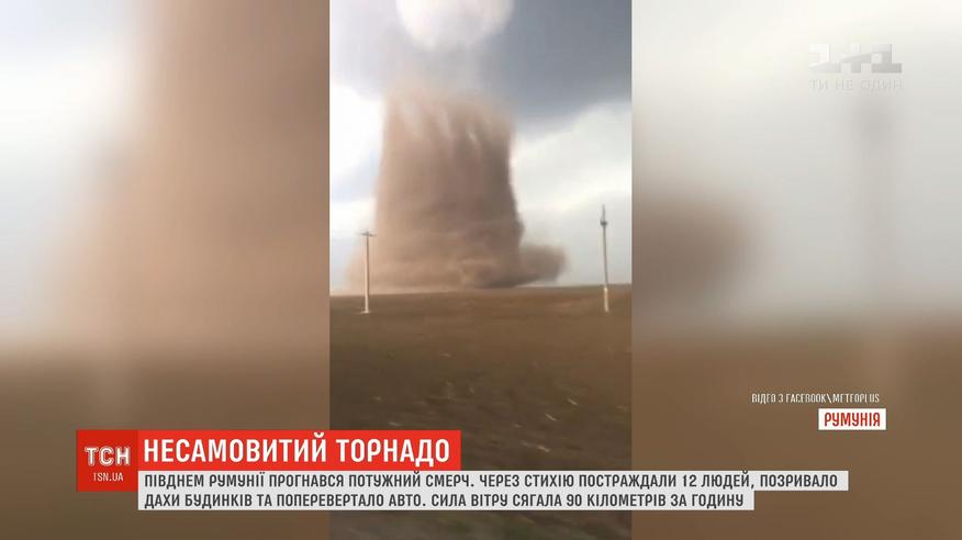 Вражаючі кадри стихії встигли зафільмувати очевидці. Сила вітру, як кажуть синоптики, досягала 90 кілометрів за годину. Через буревій постраждали 12 людей.
