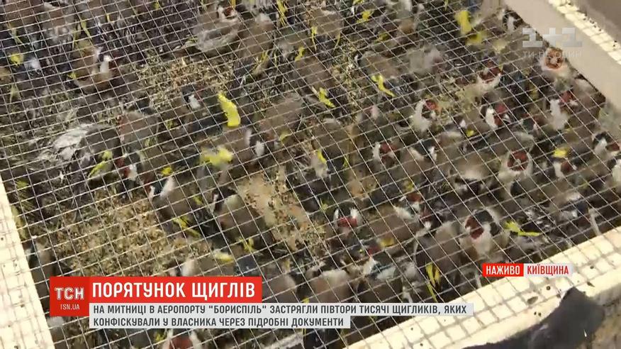 Півтори тисячі птахів застрягли на митниці в аеропорту "Бориспіль". Ящики зі щигликами конфіскували, коли власник за підробними документами намагався відправити їх до Йорданії. Птаство тепер не мають права випускати - вони так і сидять у коробках.