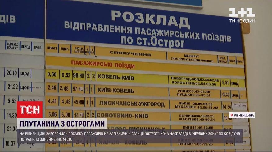 У Рівненській області "Укрзалізниця" заборонила посадку пасажирів на станції "Острог", бо місто Острог потрапило до "червоної зони" через коронавірус. Але насправді однойменна станція знаходиться за 15 кілометрів від міста, і там такі заборони діяти б не мали. До чого призвела така помилка і чи виправлятимуть її – з'ясовувала ТСН.