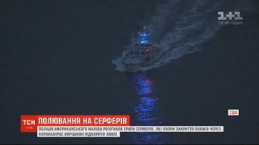 Поліція американського Малібу на катерах розігнала групу серферів. Дюжина молодиків вирішила впіймати хвилі, попри те, що у штаті закрили пляжі, аби зупинити зараження коронавірусом. Після того, як серферів помітили, на узбережжя приїхало вісім поліцейських машин, а до порушників попливли два поліцейських катера.