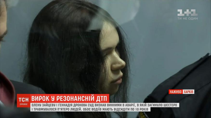 По 10 років позбавлення волі. Таке покарання присудили Олені Зайцевій та Геннадію Дронову. Учасникам резонансної аварії, яка трапилася у жовтні 2017 року. Тоді "Лексус" Зайцевої, зіткнувшись з "Фольксвагеном" Дронова , вилетів на тротуар. Загинуло шестеро людей і ще п'ятеро були травмовані.