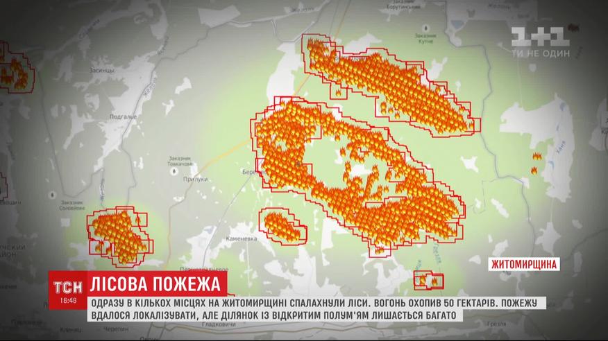 Масштабна пожежа на Житомирщині. Там горить 50 гектарів лісу. Димом затягнуло кілька сіл. Наразі на місці пожежу гасять лісники і рятувальники. Чи вдалося локалізувати пожежу –у сюжеті.