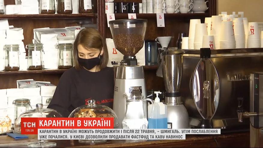 Денис Шмигаль спирається на дані ВООЗ, яка режим пандемії у всьому світі продовжила ще на два місяці. Але послаблення карантину будуть, пообіцяв прем'єр. У столиці їх уже можна помітити. Відучора тут можна з'їсти шаурму та випити кави на винос. Торгувати можуть і стаціонарні заклади і пересувні. Більше про коронавірус в Україні