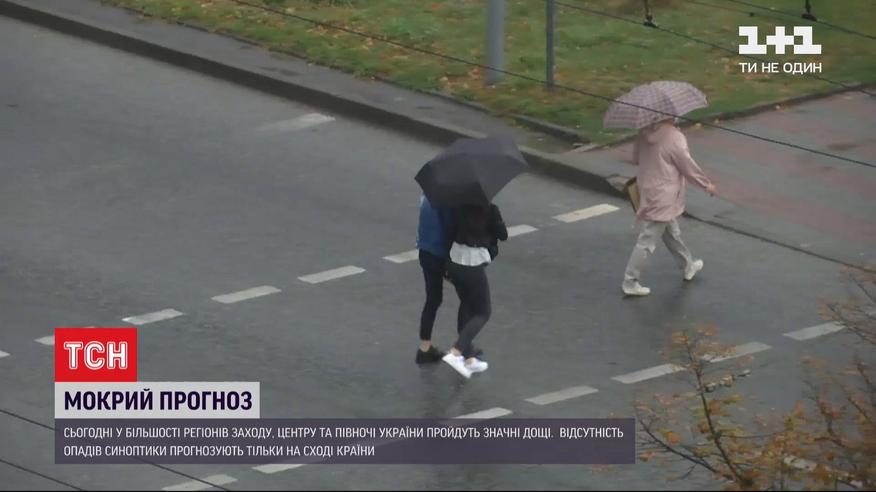 Сьогодні вже більшість регіонів України добряче намочить дощами, попереджають синоптики. Сухо, але вітряно буде тільки на сході країни. А от жителям заходу, півночі та центру варто запастися парасолькою та гумовими чоботами - там прогнозують рясні зливи. У Києві ллє і гримить уже годину. Це вже стало причиною для величезних заторів у столиці.