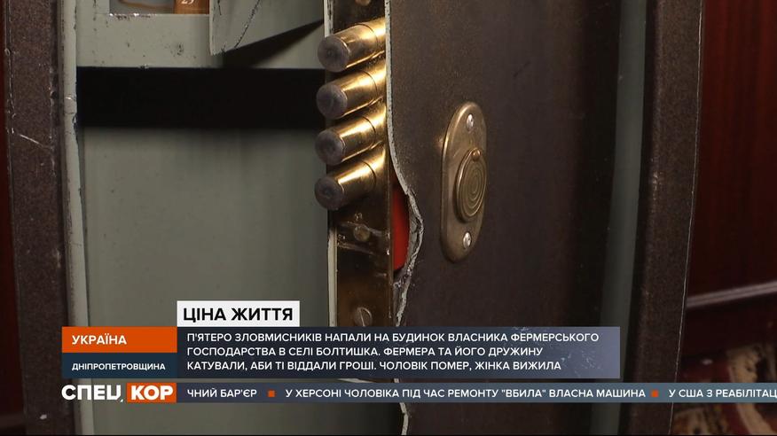 У Дніпропетровській області п’ять зловмисників у балаклавах напали на приватний будинок у селі Болтишка. Нападники крізь вікно проникли до житла власника фермерського господарства та почали його катувати, аби той віддав їм гроші. У цей самий час, у сусідній кімнаті душили і його дружину. Урешті-решт, злочинці вбили 67-річного чоловіка, та за допомогою лома відкрили сейф, звідки забрали близько мільйона гривень. Дружина постраждалого залишилася живою. Повні випуски дивіться на 1+1 video