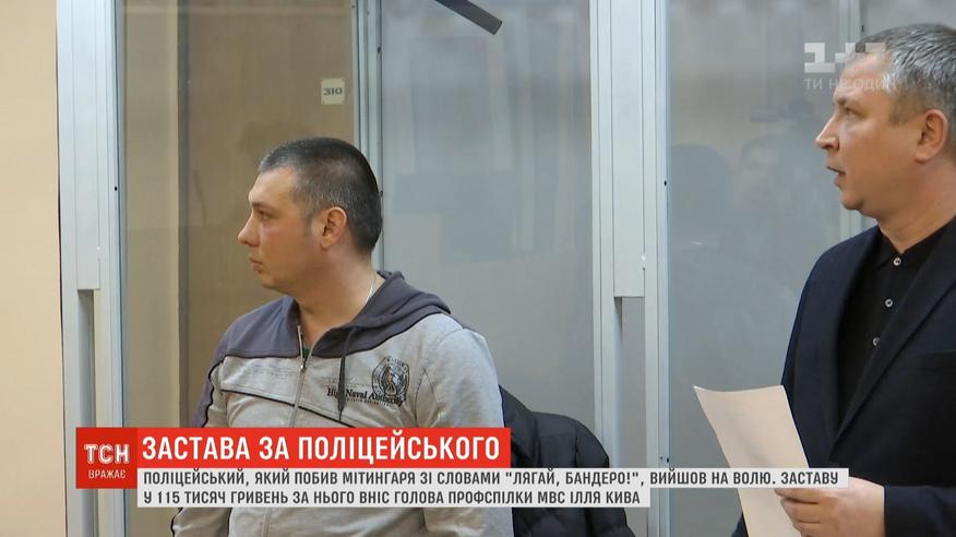 Поліцейський, який під вигуки "Лягай, Бандеро" бив мітингаря, вийшов під заставу