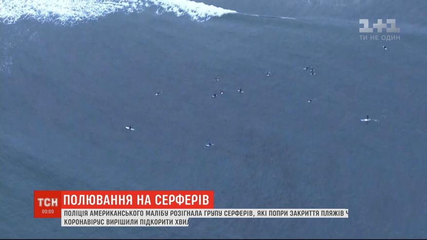 Поліція американського Малібу на катерах розігнала групу серферів. Дюжина молодиків вирішила впіймати хвилі, попри те, що у штаті закрили пляжі, аби зупинити зараження коронавірусом. Після того, як серферів помітили, на узбережжя приїхало вісім поліцейських машин, а до порушників попливли два поліцейських катера.