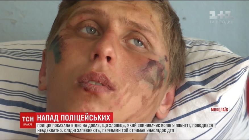 17-річний хлопець з Миколаєва звинувачує копів в жорстокому побитті. ВІн зараз у лікарні з численними гематомами та переламом кісток тазу. Запевняє, що копи його забрали у райвідділок, побили, вивезли та кинули за містом. У поліції це заперечують. На доказ – показали відео.