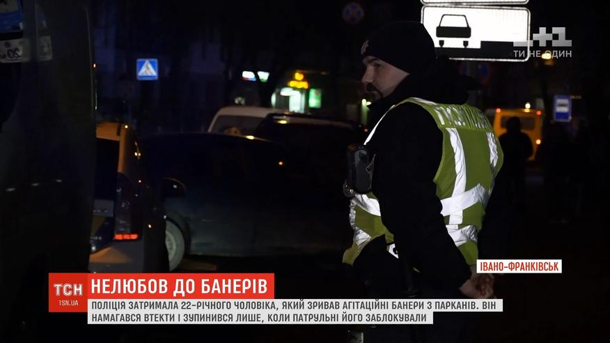Поліція затримала чоловіка, який зривав агітаційні банери в Івано-Франківську