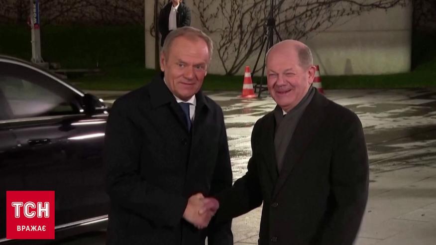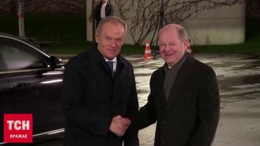 Німеччина буде захищати Польщу в разі нападу, про це заявив канцлер Німеччини Олаф Шольц на зустрічі із прем’єром Польщі Дональдом Туском у Берліні. І того ж дня очільник німецького уряду взяв участь у церемонії закладання нового заводу збройного концерну Райнметал, який вироблятиме артилерійські снаряди - зокрема, і для України. Кореспондентка ТСН Наталія Фібріг докладніше.