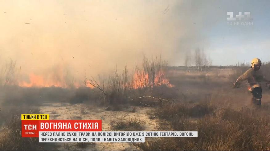 Ліси, поля, природний заповідник - з сотню гектарів уже винищило полум'я на Поліссі. Живцем горять тварини, знищується рослинність. Все через паліїв сухої трави, кажуть рятувальники. Багатьох знаходять і штрафують, але інших це не зупиняє. Як долають пожежі - у сюжеті.