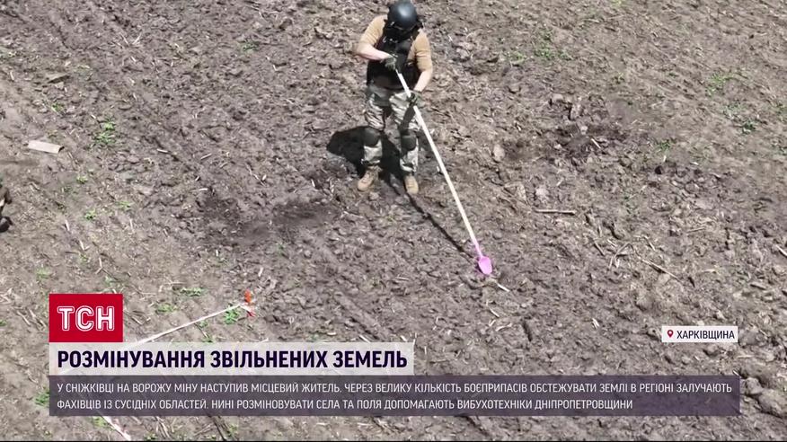 Ворожих мін на звільненій Харківщині досі так багато, що доводиться залучати фахівців із сусідніх областей. Нині в регіоні не можуть засіяти більшість полів, бо вони нашпиговані вибухівкою. Без світла залишаються десятки сіл, і заживити їх енергетики не в змозі, бо міни заховані дорогами уздовж ліній електропередач. У найбільш небезпечних районах бригади саперів за день встигають розмінувати лиш 10 квадратних метрів території. Тож до розмінування долучились дніпровські вибухотехніки. Правоохоронці закликають жителів бути вкрай обачними - не гуляти необстеженими територіями та не чіпати підозрілих предметів.