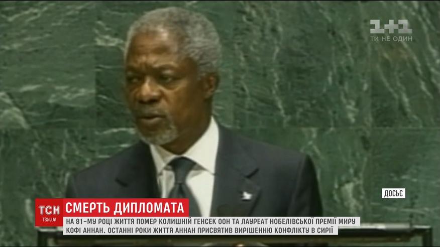 Усе життя на службі миру. Пішов з життя Кофі Аннан - один з найвідоміших дипломатів світу. Аннану було вісімдесят, помер він у родинному колі у Швейцарії після нетривалої хвороби. Про причини смерті не повідомляють.