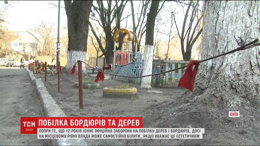 Попри офіційну заборону, влада продовжує масово білити дерева та бордюри