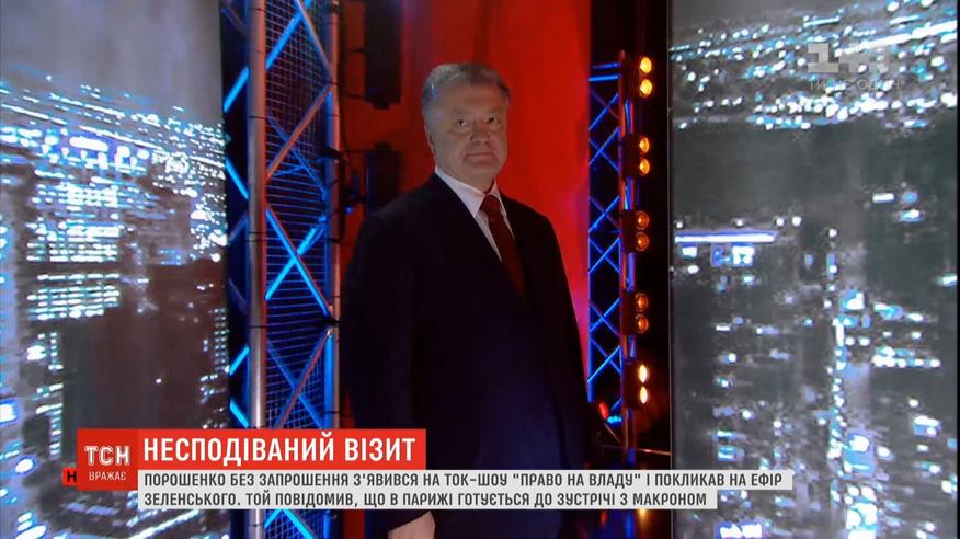 Порошенко без запрошення з'явився у ток-шоу "Право на владу" та публічно поспілкувався із Зеленським
