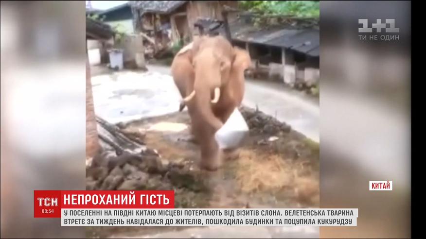 Вже втретє за тиждень до місцевих навідується гігантська тварина. Жителі налякані, бо й не знають, що очікувати від велетня. Бідкаються, що під час візитів слон понівечив двері будинків та поцупив пакети із кукурудзою. Втім, коли нахабний гість почув крик, миттєво кинув награбоване та втік.
