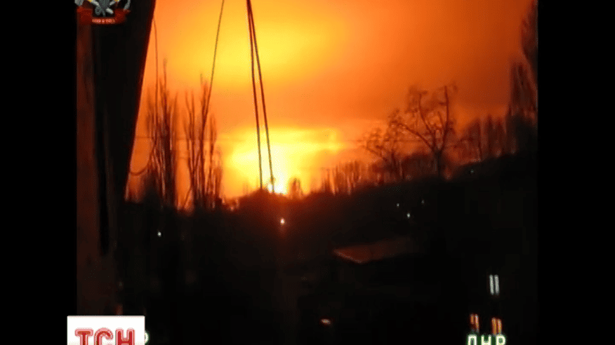 За попередніми даними, ввечері у повітря злетів склад боєприпасів бойовиків. Вибух був такої сили, що його чули у сусідніх містах Горлівці та Макіївці, а в самому Донецьку шибки повилітали навіть у центрі міста.