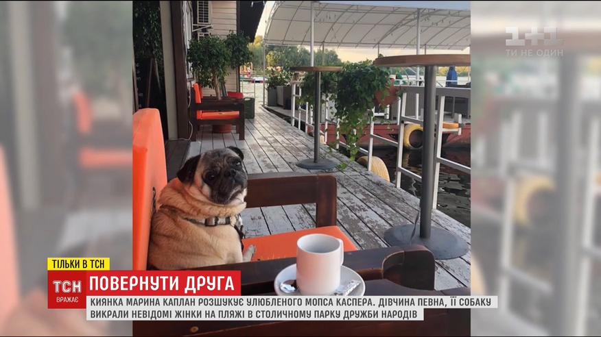 Повернути друга. У киянки Марини Каплан серед білого дня поцупили улюбленого мопса Каспера. Дівчина певна, пес не загубився – його викрали жінки, які в цей день відпочивали на пляжі в столичному парку Дружби народів. Навіщо собака знадобився незнайомкам, Марина не розуміє й обіцяє винагороду тому, хто поверне їй плеканця.
