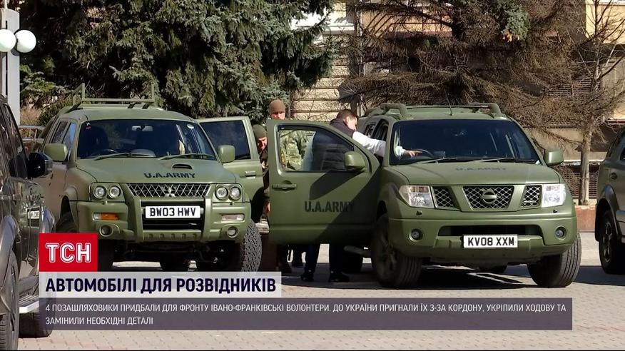 Автомобілі для розвідників. 4 позашляховики придбали для фронту Івано-Франківські волонтери. До України пригнали їх з-за кордону. Потім укріпили у позашляховиках ходову, замінили необхідні деталі, аби вони легко могли долати фронтове бездоріжжя. На все про все витратили майже мільйон гривень. Позашляховики вже поїхали на Донецький напрямок.