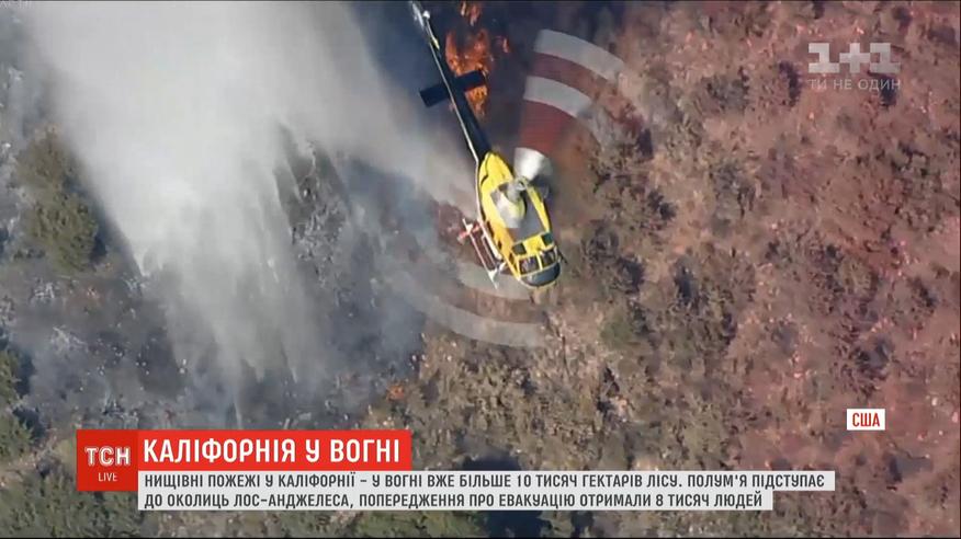 Нищівні пожежі у Каліфорнії. У вогні вже понад 10 тисяч гектарів лісу. Полум'я підступає до околиць Лос-Анджелеса. Попередження про евакуацію з небезпечних районів отримали майже 8 тисяч людей. Найбільше осередків вогню на крутих і нерівних схилах, куди не можуть дістатись пожежні машини. Полум'я заливають з повітря, але спекотна та вітряна погода заважає роботі рятувальників. За даними департаменту лісництва США, під контролем не більше 5% пожежі. На боротьбу з вогнем мобілізували більше 2 тисяч рятувальників. Саму пожежу охрестили "Яблуневою" – за назвою траси, поблизу якої вона почалась. Поліція не виключає підпал.