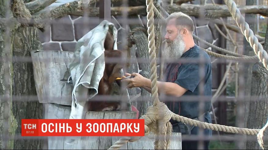 Орангутанги кутаються в ковдрочки, а свині збиваються до купи. Першими похолодання відчули звірі. У зоопарку неподалік Києва вони утепляються, як можуть. Скунси і бабаки - сіном, а ведмеді - жирною їжею. Як тварини зустрічають справжню осінь, бачила ТСН.