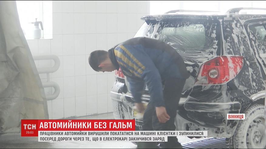 Працівників вінницької автомийки заскочили за кермом електрокара клієнтів
