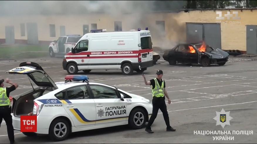 Копи та рятувальники тренуються забезпечувати спокій та безпеку під час фіналу Ліги чемпіонів. Розлючений натовп футбольних фанів правоохоронці разом з нацгвардійцями спочатку зупинятимуть, потім вболівальників ділитимуть на групки, які ретельно перевірять. Аби тренування було наближене до реальних подій, спалили декілька авто, а для евакуації потерпілих задіяли гелікоптер.