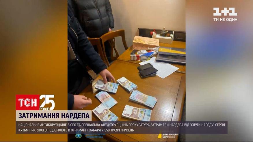 Правоохоронці затримали нардепа від "Слуги народу" Сергія Кузьміних, якого підозрюють в отриманні хабара у 558 тисяч гривень. За даними Національного антикорупційного бюро нардепу, який перебував у розшуку за переховування від правоохоронців, вручили клопотання про обрання запобіжного заходу. За даними слідства, депутат отримав півмільйонний хабар за сприяння в укладенні контрактів між приватними компаніями і лікарнею у Житомирській області.